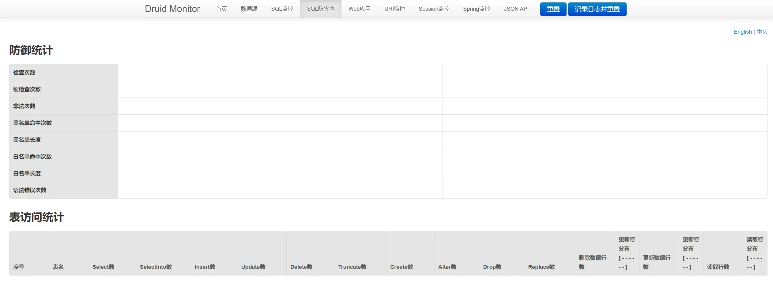 }启动 Spring Boot 应用,访问 Druid 监控面板地址:http://localhost: 8080/druid/