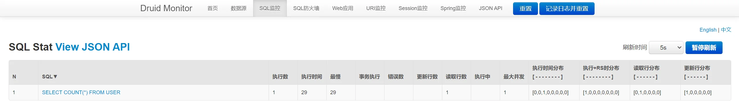 监控面板将 SQL 执行时间分为 8 个区间统计,直观反映 SQL 性能分布: