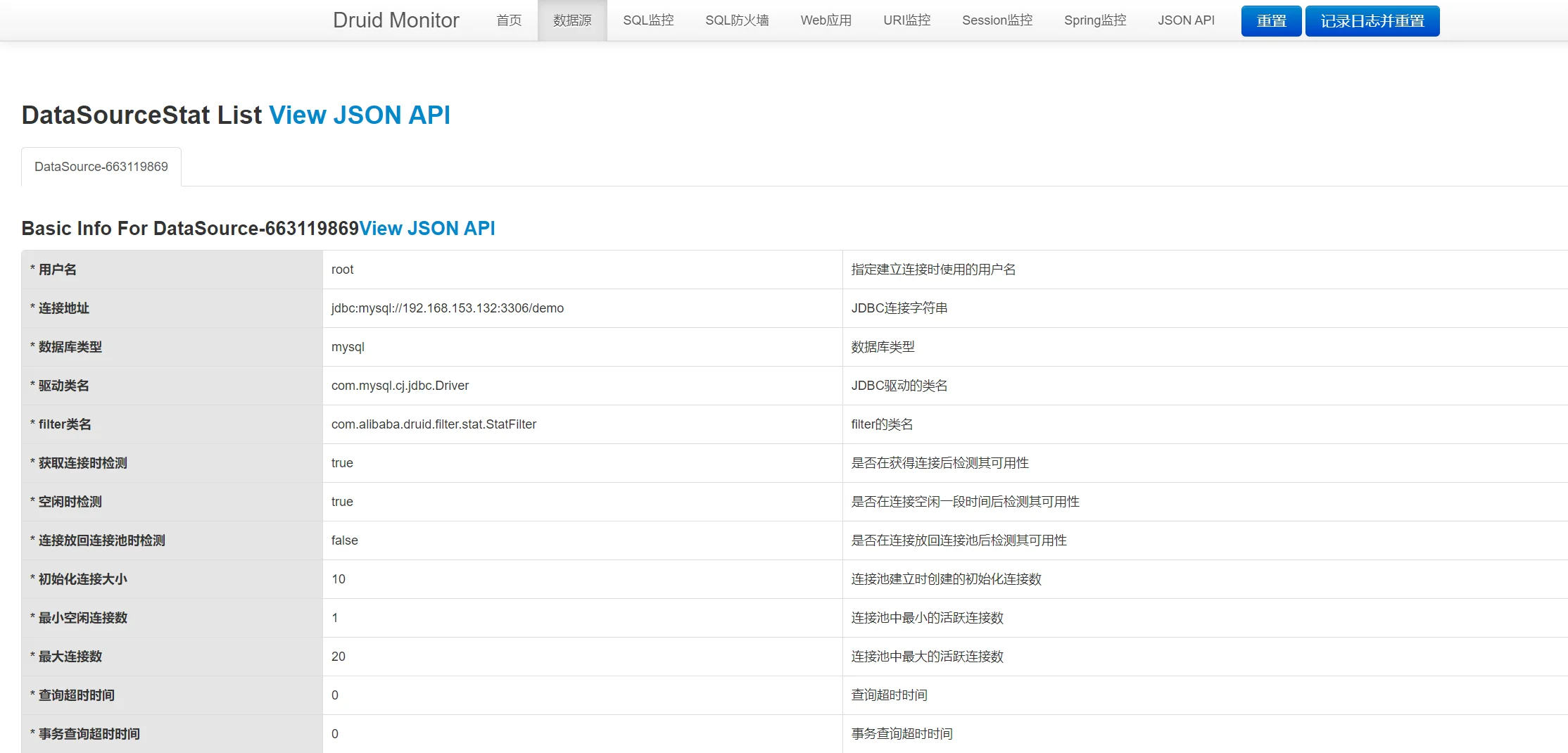 connection-properties: druid.stat.mergeSql=true;druid.stat.slowSqlMillis=500监控面板账号密码使用强密码,限制内网访问;
