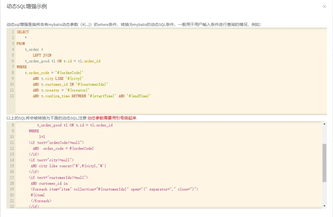 智能识别 SQL 语句中的 MyBatis 动态参数,自动转换为 <if>、<where> 等标准动态 SQL 标签,无需手动拼接动态条件。