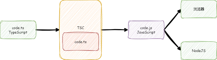 Node.js 与浏览器仅能识别 JavaScript 代码,无法直接运行 TypeScript 代码。因此必须先通过 TypeScript 编译器将 .ts 文件转换为 .js 文件,才能正常执行。