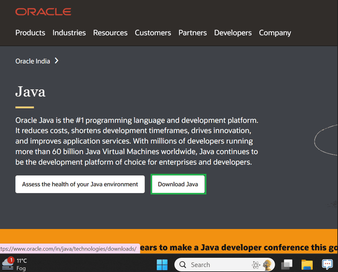 在这里,我们将讨论如何在 64 位 Windows 系统上下载并安装 Java,并配置环境,以便在命令提示符中运行第一个 Java 程序。该过程适用于所有 Windows 版本,包括 Windows 7、8、10 和 11
